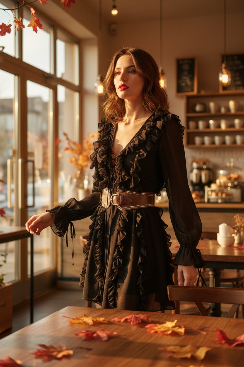 Camisa volantes botones oro