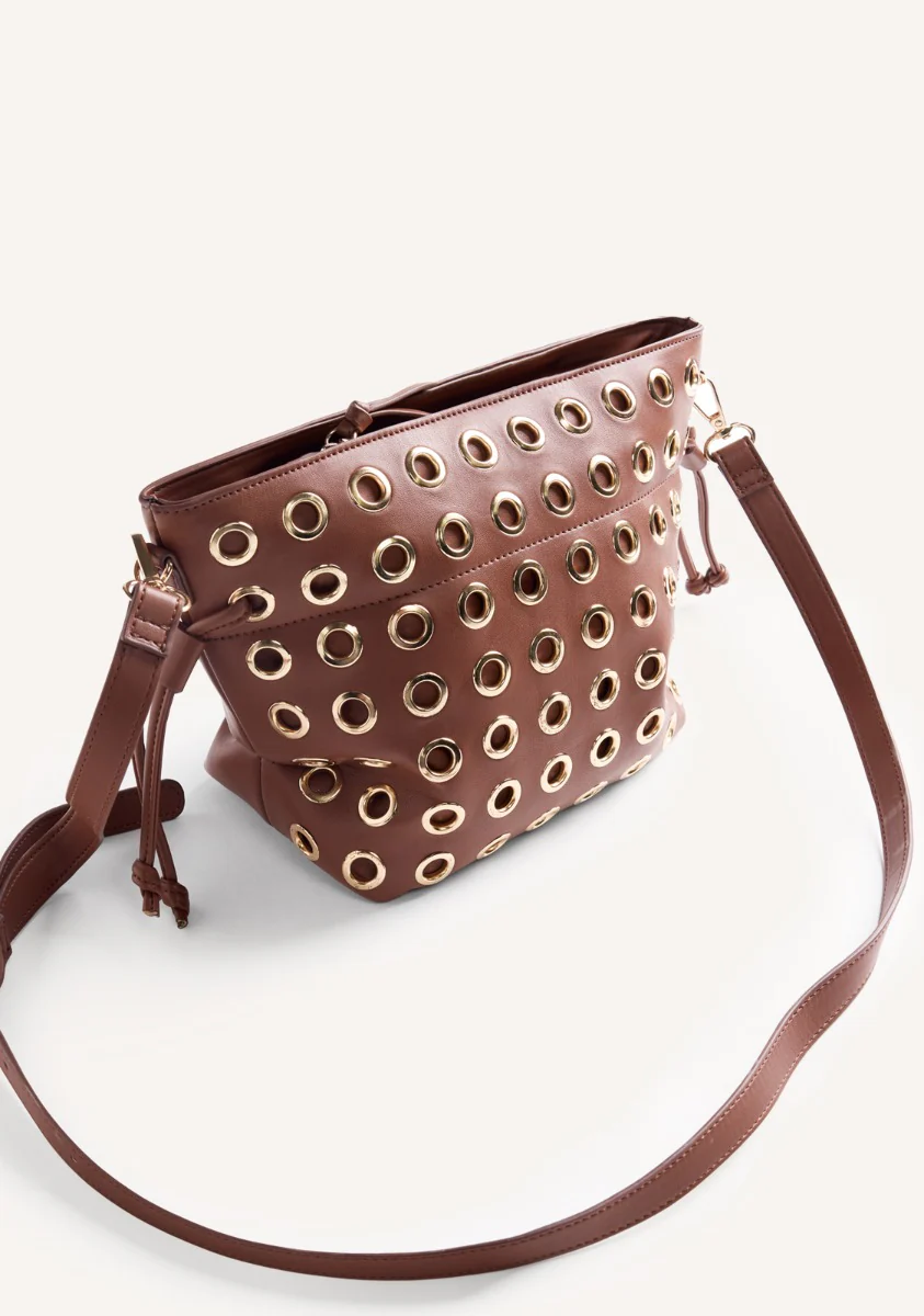 BOLSO MARRÓN BANDOLERA TACHAS