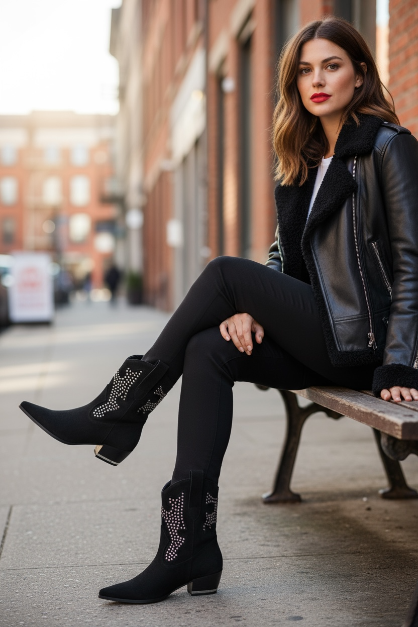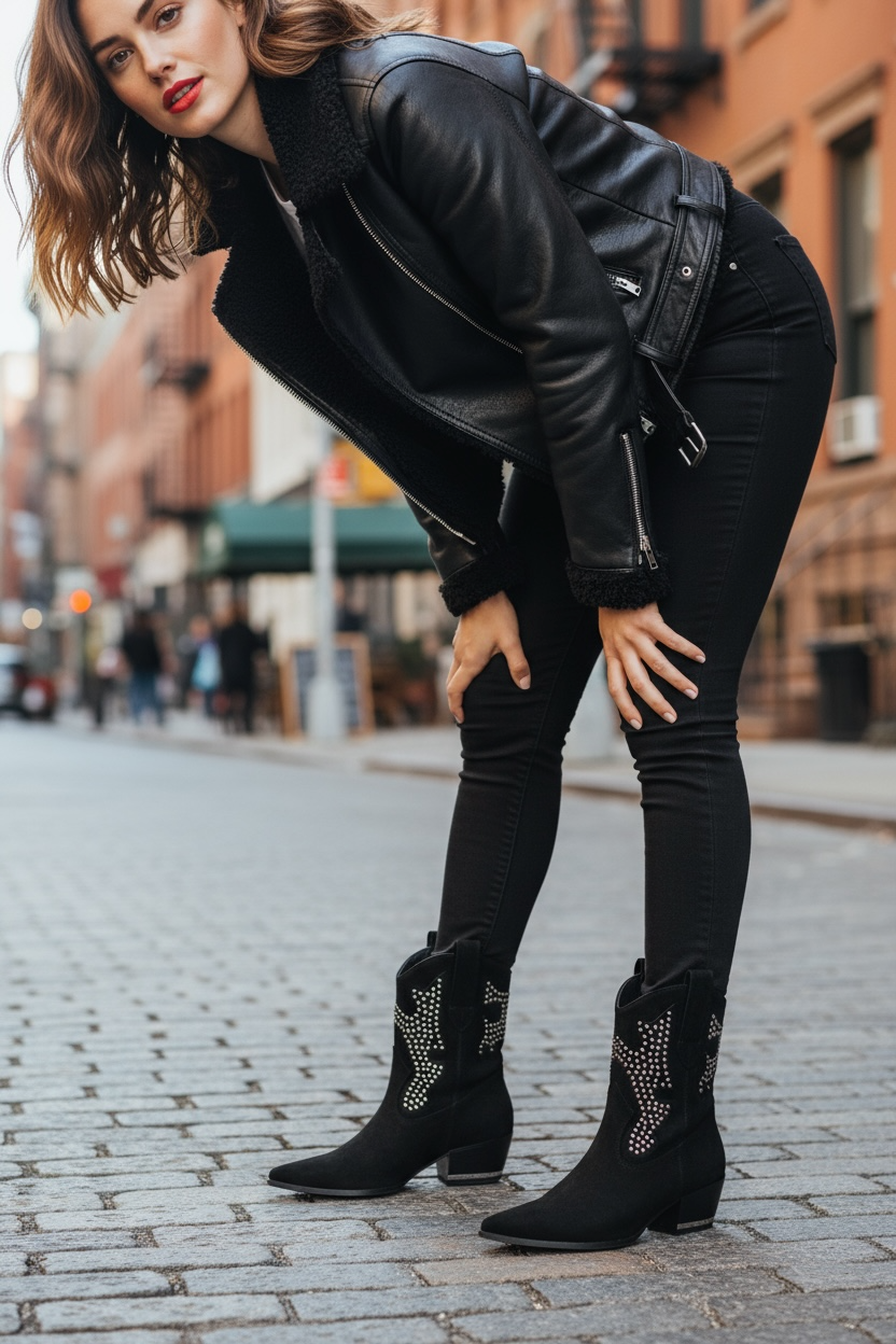 Botín campero en color negro con tachas