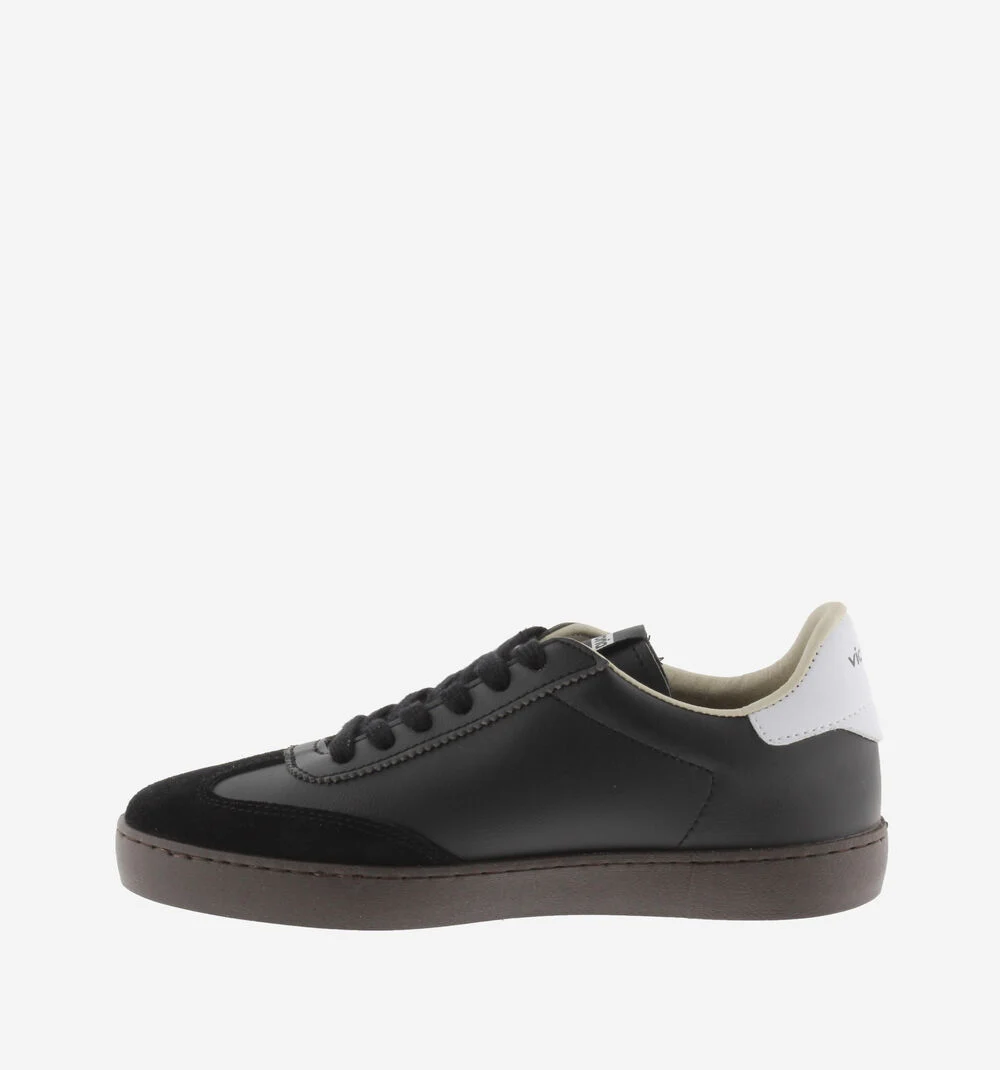 Zapatillas unisex fabricadas en España en material efecto piel. Logo impreso en la pieza trasera y V en el lateral al tono. Puntera de serraje con nuevo corte ciclista, aportando estilo. Su suela en marrón chocolate está compuesta por aceites vegetales en lugar de minerales reduciendo así el impacto medioambiental. Además, incluyen una plantilla más ergonómica, confeccionada a partir de materiales reciclados, proporcionando un confort superior en cada paso.