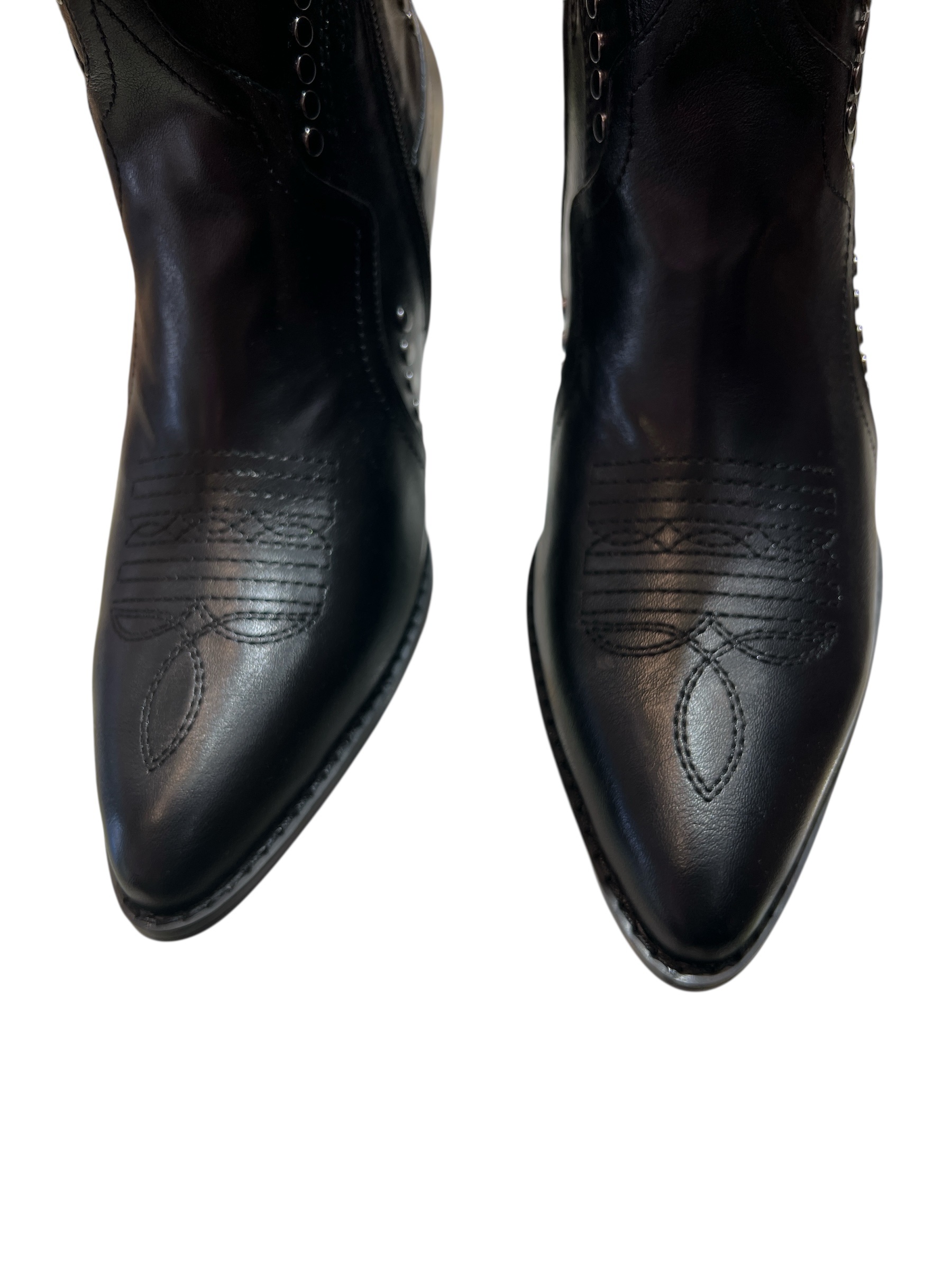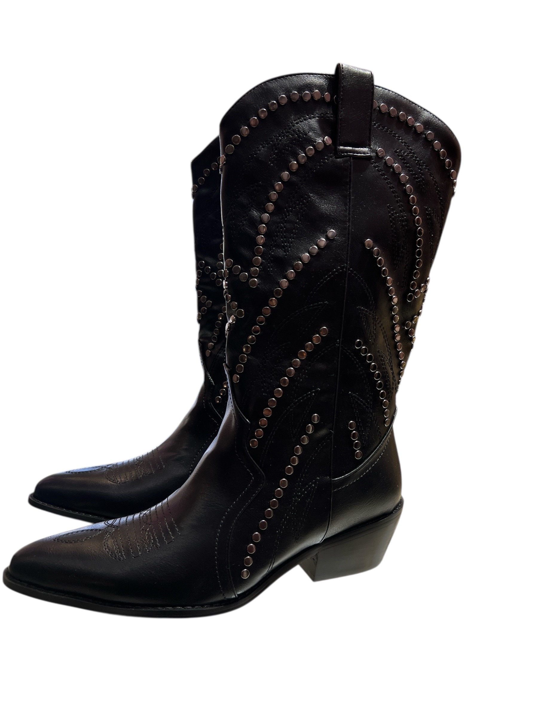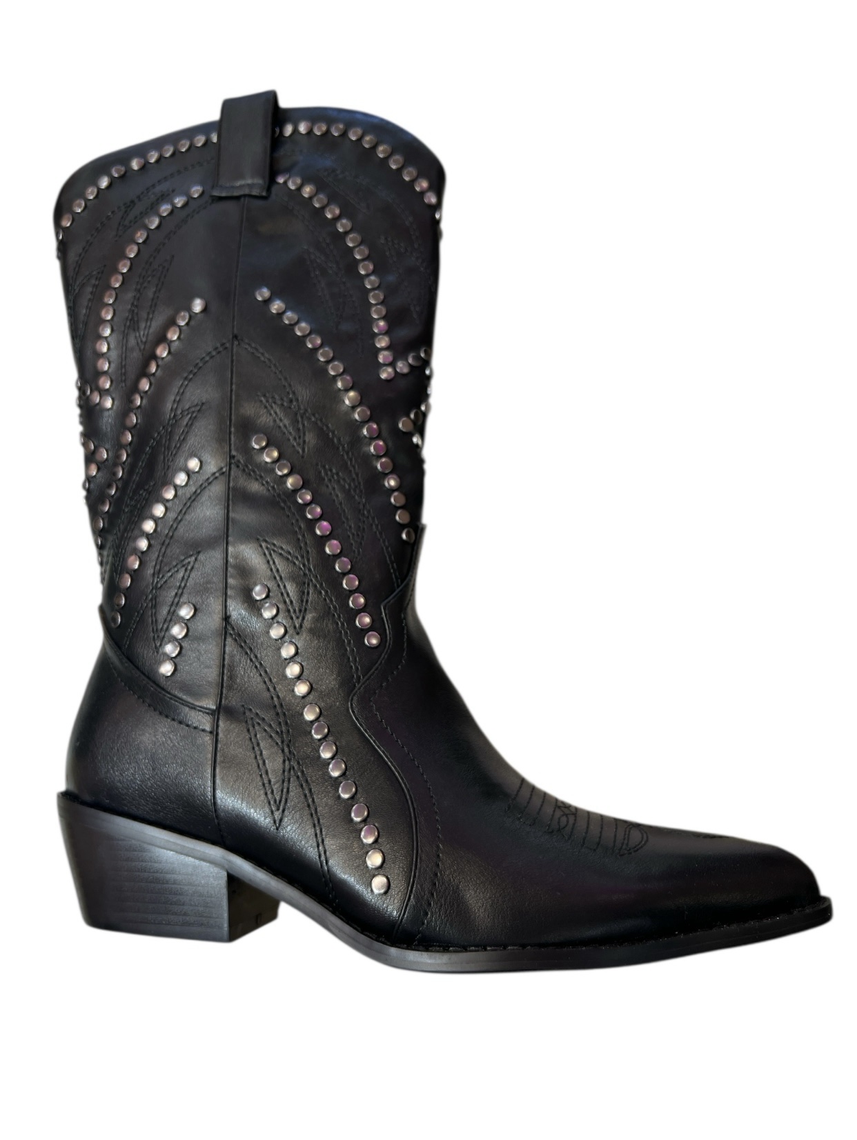 Estas botas cowboy negras con tachas para mujer son ese fondo de armario que no falla. Con un diseño atemporal y ese toque western que está tan en tendencia, elevan cualquier look sin esfuerzo. Están confeccionadas con materiales de alta calidad y cuentan con una planta de piel, lo que las hace increíblemente cómodas incluso en días largos
