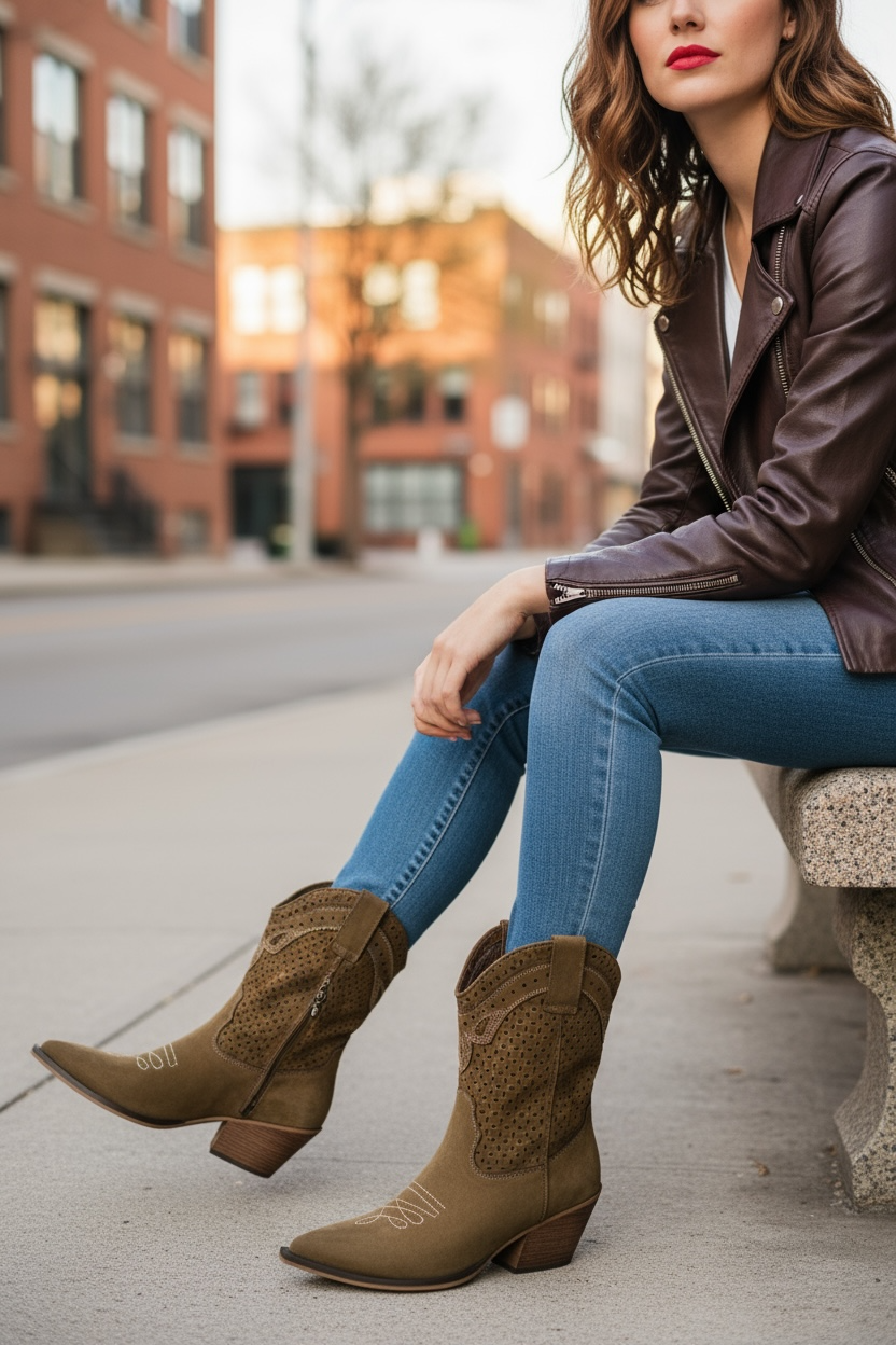 Botín estilo campero. Cremallera en la parte lateral interior. Tiradores en los laterales. Caña calada.