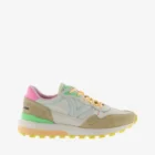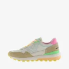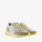 Están confeccionadas en nylon con piezas multicolor superpuestas de serraje y sintéticas. Parche de goma con el logotipo de la marca en la lengüeta. Cierre mediante cordones coloridos de tipo redondo. Cómoda suela de phylon con patín de TPR en relieve en tonos flúor y estabilizador en el talón.