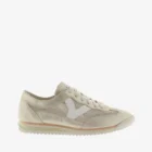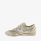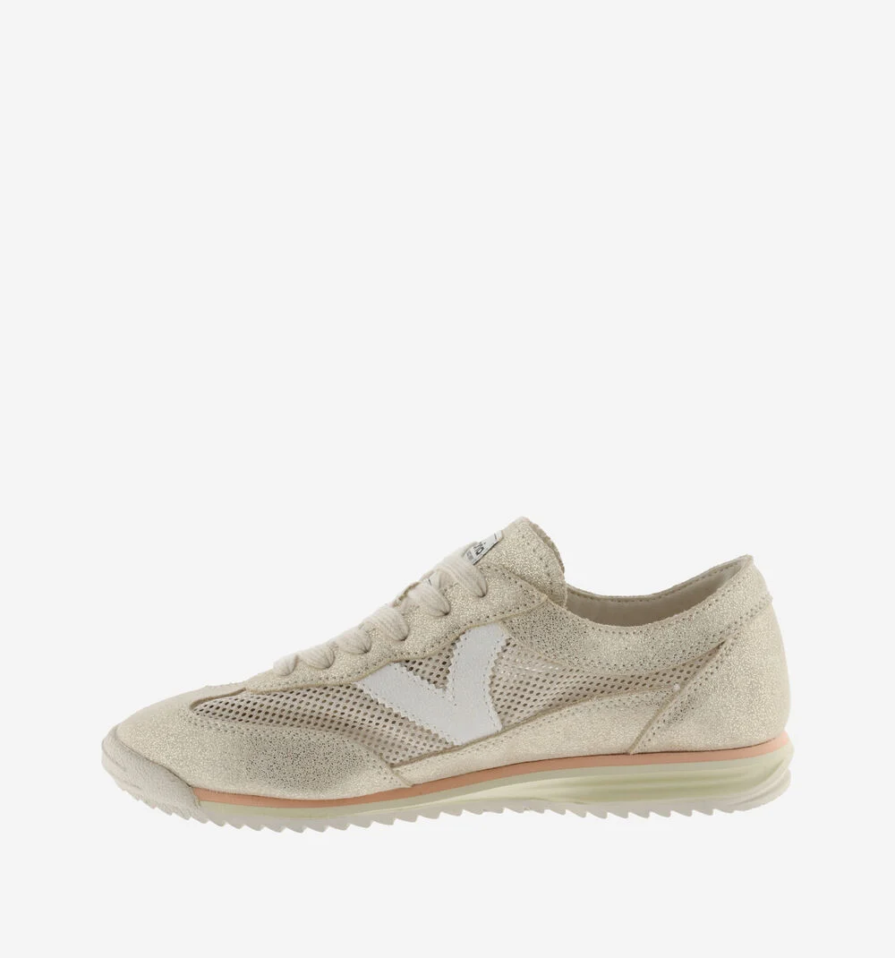 Sneakers para mujer fabricadas en tejido tipo malla con piezas superpuestas de serraje metalizado. V de victoria lateral en efecto piel blanca en contraste. Suela bicolor de goma con patín dentado de EVA en blanco.