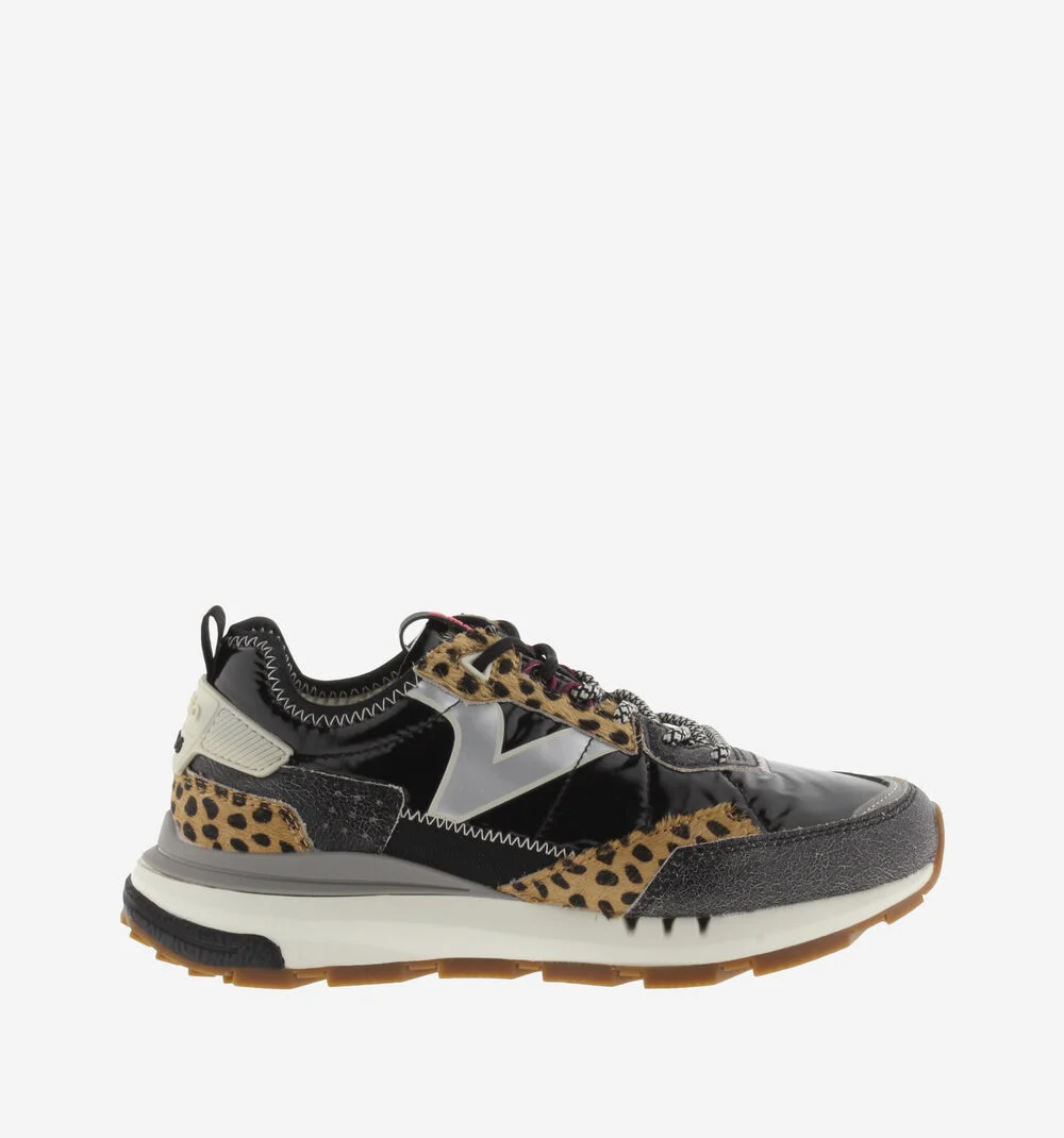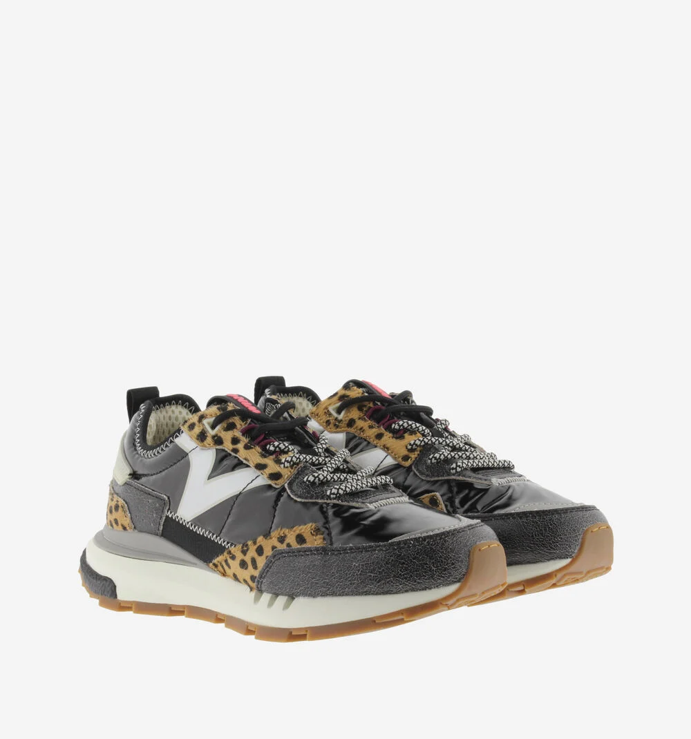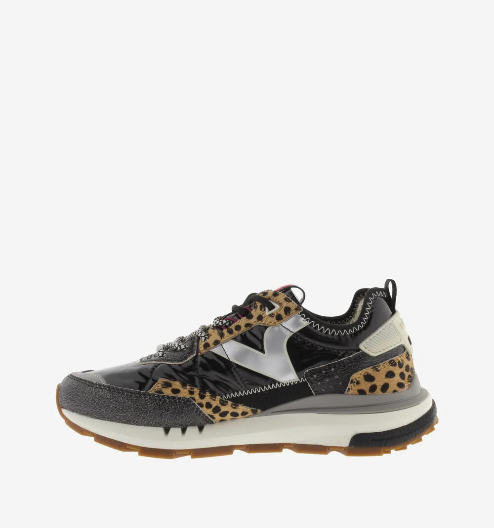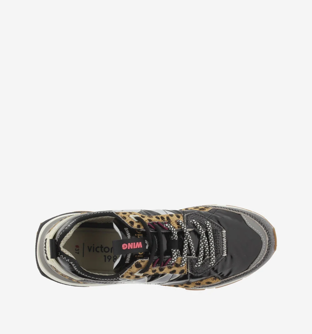 Las sneakers WING EVO-ANIMAL para mujer de la colección 1985 son la combinación perfecta de estilo urbano y comodidad. Confeccionadas en nylon metalizado con piezas de serraje vacuno y de piel «PONY» con acabado animal print. V retro lateral en TPU transfer. Su suela bicolor con base de caucho y diseño ergonómico garantiza un agarre óptimo en cualquier superficie, mientras que la plantilla con base de espuma proporciona una amortiguación ligera para una pisada confortable.