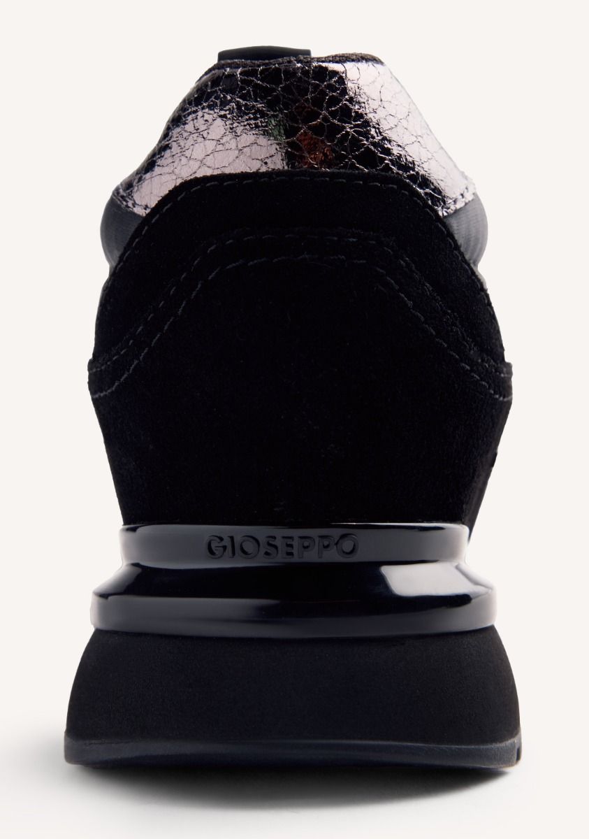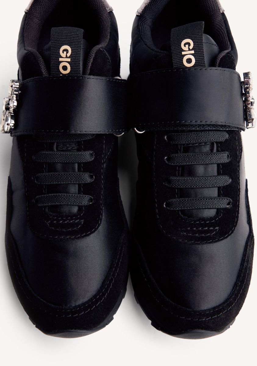 Zapatillas de piel serraje con cuña interna. Cuentan con cuña plantilla acolchada y estabilizador en el talón. Cierre ajustable con detalle de joya. Cordones elásticos. Altura cuña interna: 3 cm.