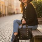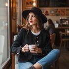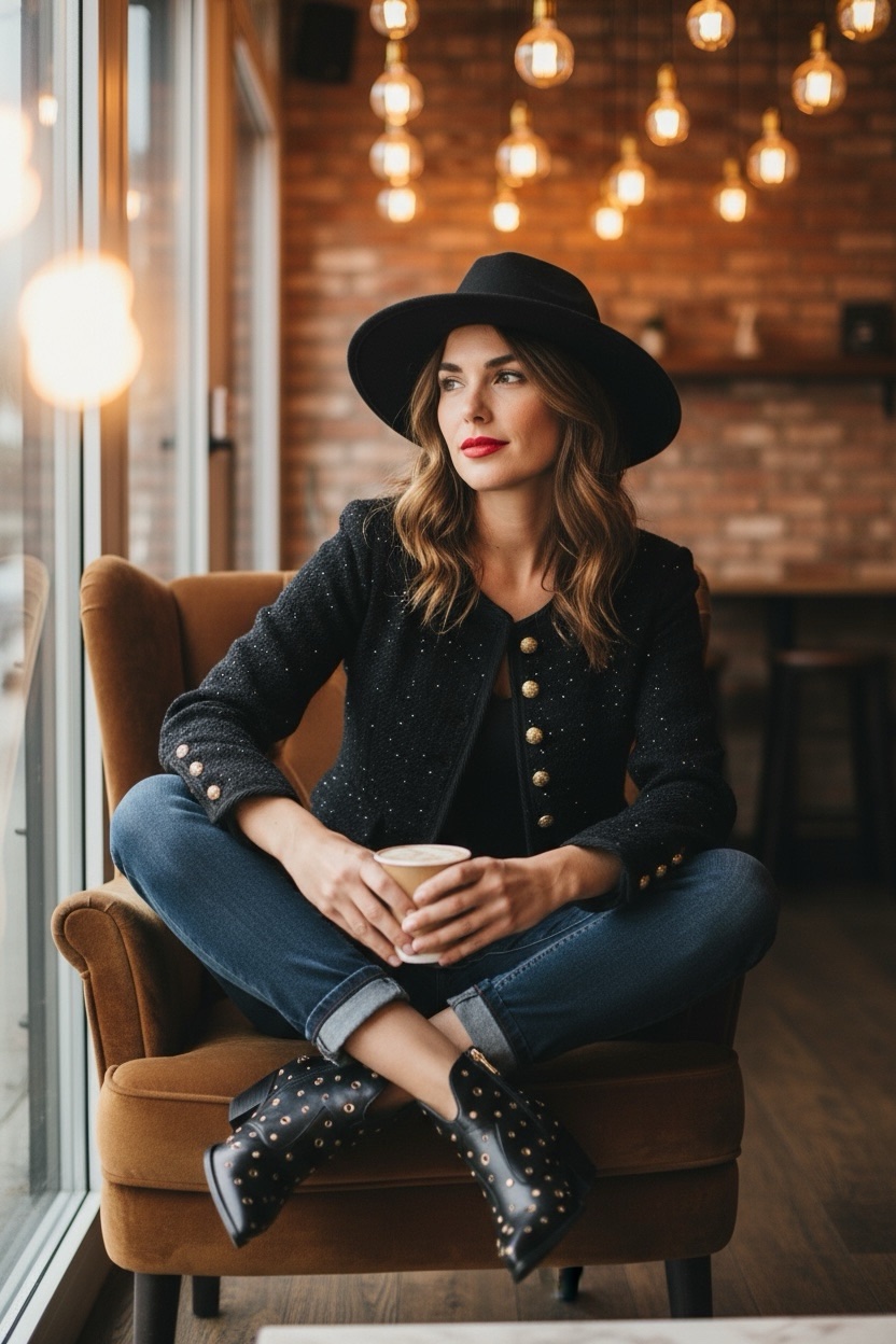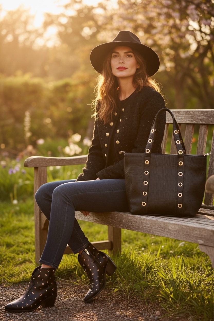 Chaqueta tweed negra tipo Chanel. Botones oro.