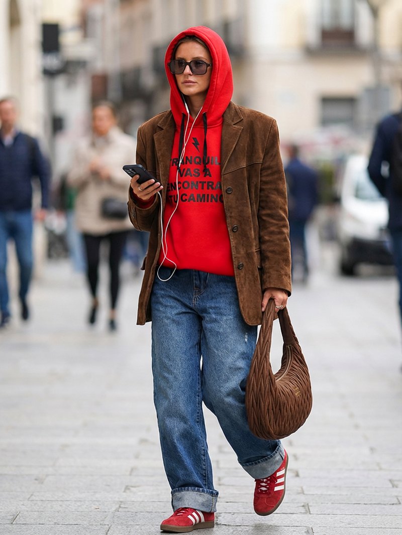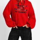 Sudadera roja de gustoso algodón con frase motivadora en serigrafía de caja engomado con capucha y mucho rollazo.