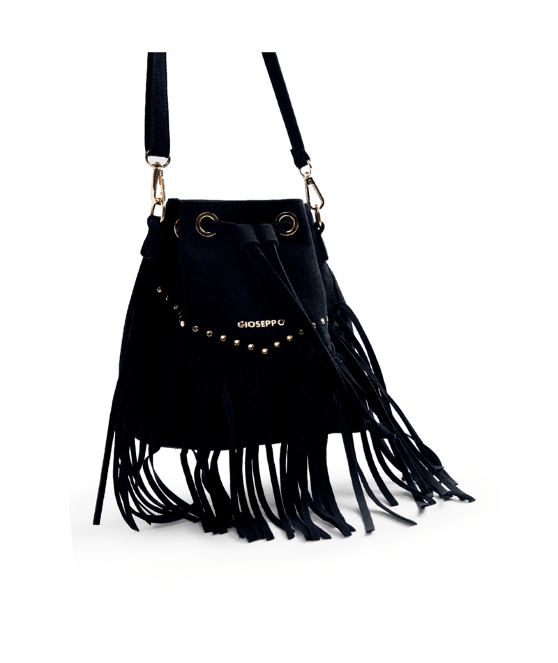Bolso tipo bucket suave al tacto con detalle de flecos. Forro interior y cierre con cordón ajustable. Asa larga. Capacidad: