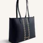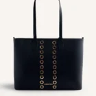 Bolso tipo shopper con ollados. Forro interior y cierre con cremallera. Asa larga.