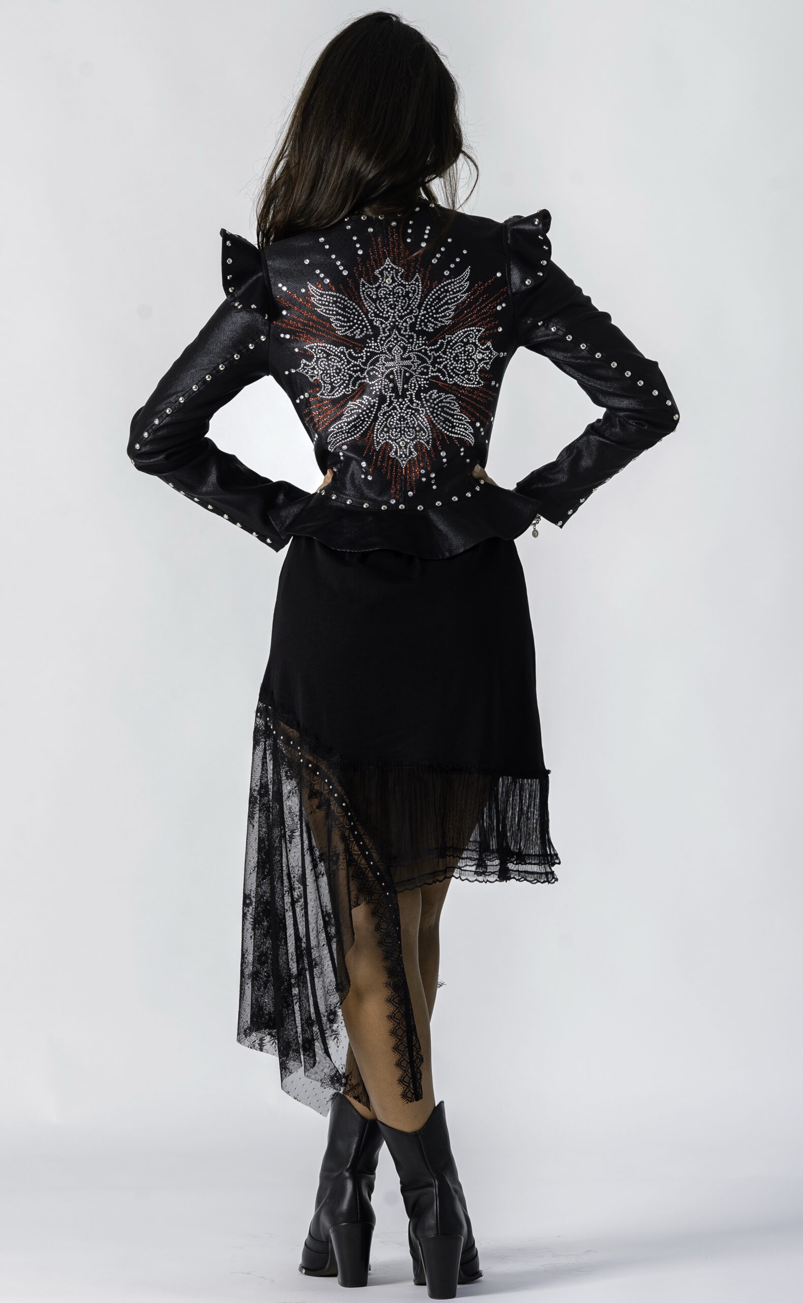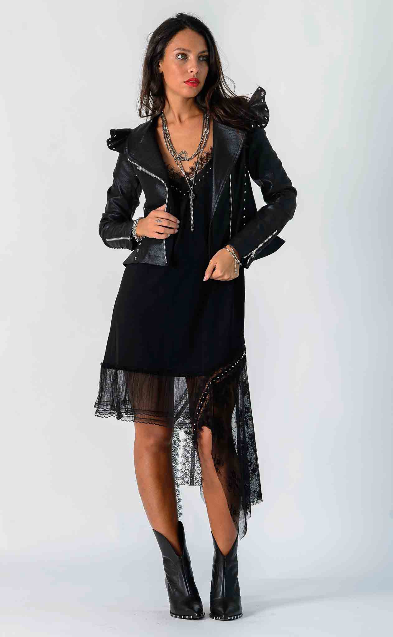 Chaqueta de sarga elastizada con detalles de pedrerías Saint Sinner. Un diseño único que añade fuerza a cualquier look sin exagerar.