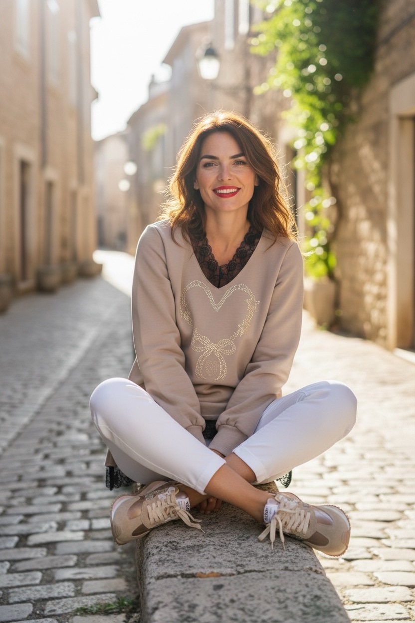 Detalle de dibujo en tachas de color oro con el logo de la marca.