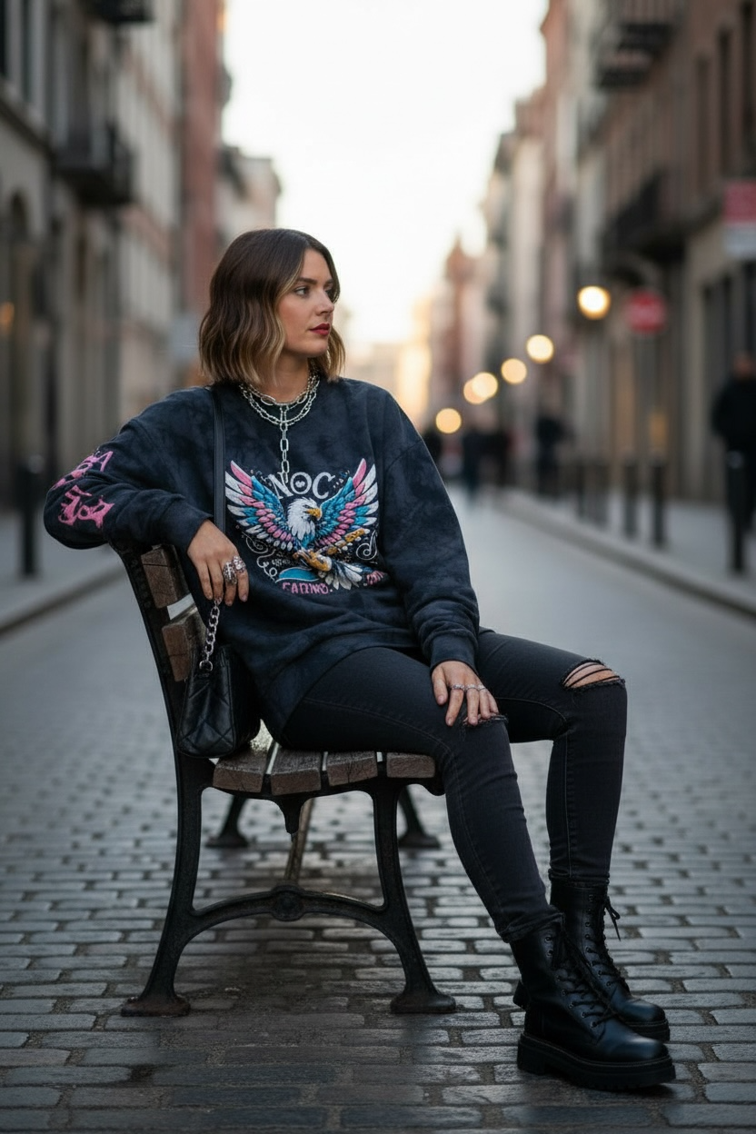 Eagle Rock, la fuerza de águila y ese toque rock. Unisex, cañera….Sudadeta over en felpa tie dye con pelito interior, súper gustosa, ilustración central de águila con ese rollo tan Top. Llévala sola o en pareja, con amigas, a un concierto….no querrás quitártela de encima porque literalmente va con todo!!
