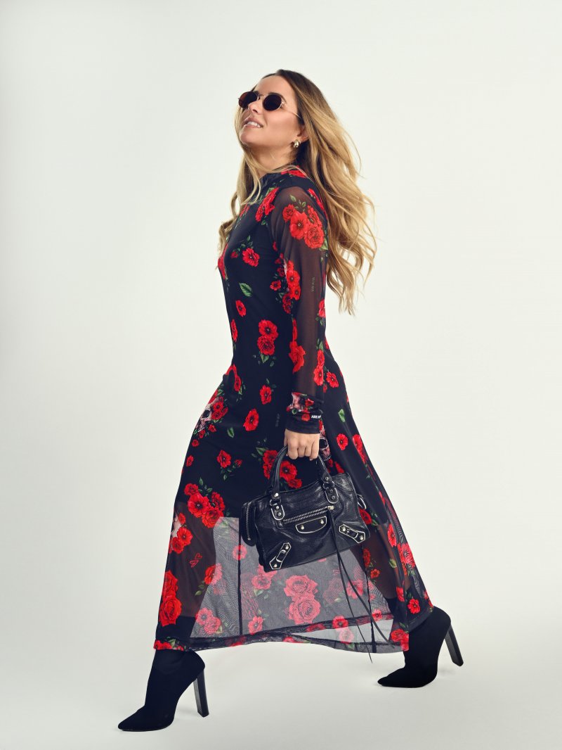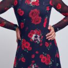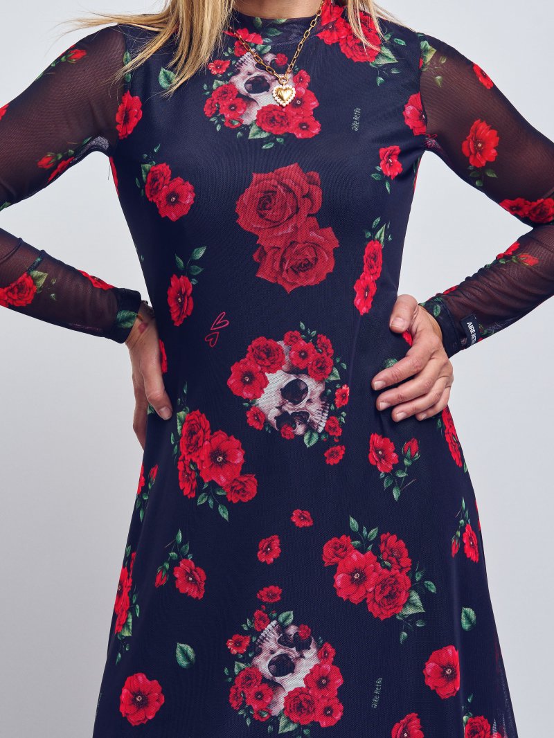 Vestido midi de tul total print Rosas & Calaveras, lleva en el interior forro sin mangas hasta medio muslo. Tiene todo el rollazo que necesitas, no pasarás desapercibida!