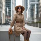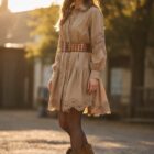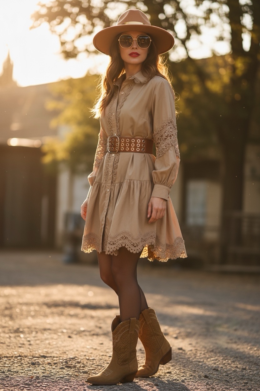 Vestido camisero en color marrón con detalles de encaje.